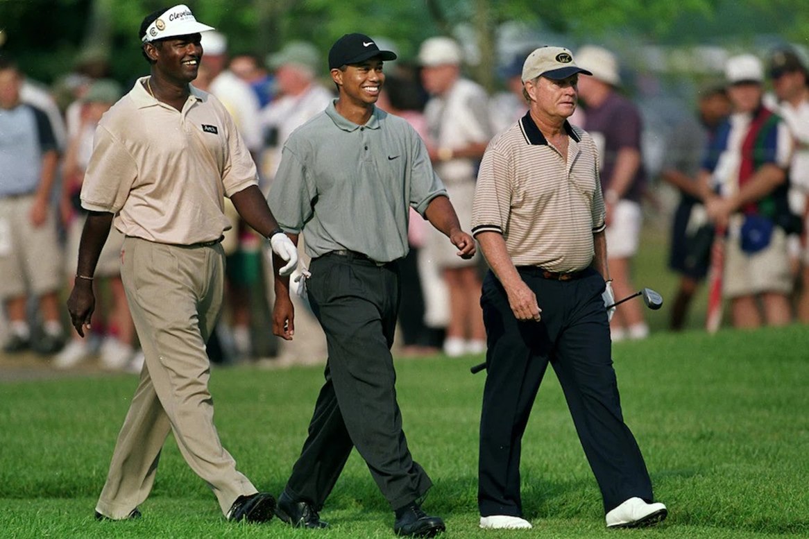 Tuy nhiên nhóm của Tiger và Nicklaus còn có Vijay Singh – nhà vô địch The Masters năm đó. Bức ảnh này có lẽ là một trong số ít khoảnh khắc Tiger và Vijay thoải mái bên nhau trên sân golf.