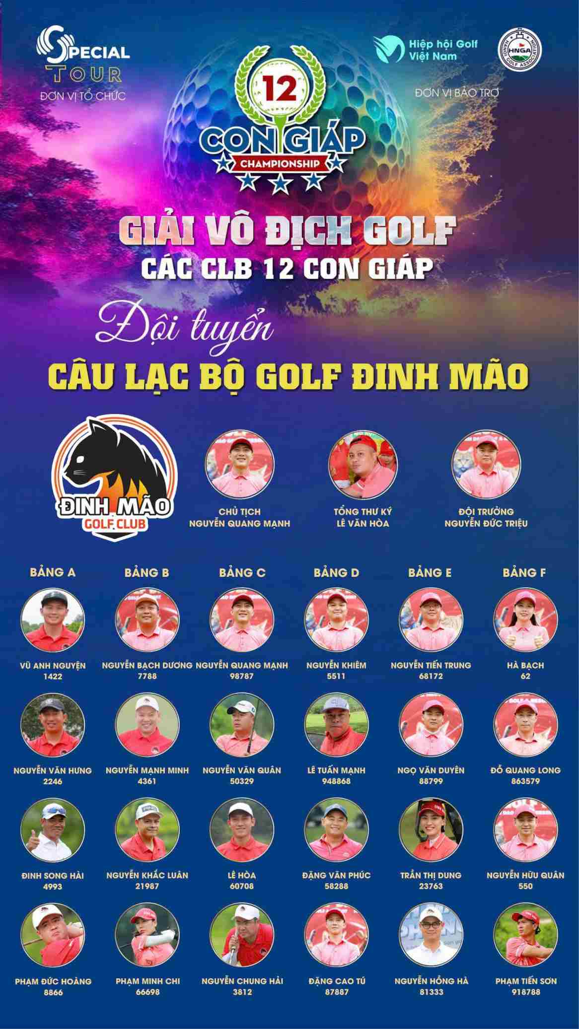 Sau những thay đổi đột phá về địa điểm và thể thức thi đấu, 12 CLB Con Giáp trong hệ thống Special Tour đã hoàn tất công tác chuẩn bị với những đội hình mạnh nhất, sẵn sàng tranh tài tại Tam Đảo Golf Resort vào hai ngày 22-23/5. Dưới đây là 12 sắc thái thần khí đội hình của 12 CLB tham gia giải đấu.
