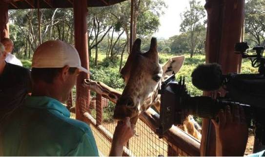 Tay golf Luca Bjerregaard cho hươu cao cổ ăn ở Kenya