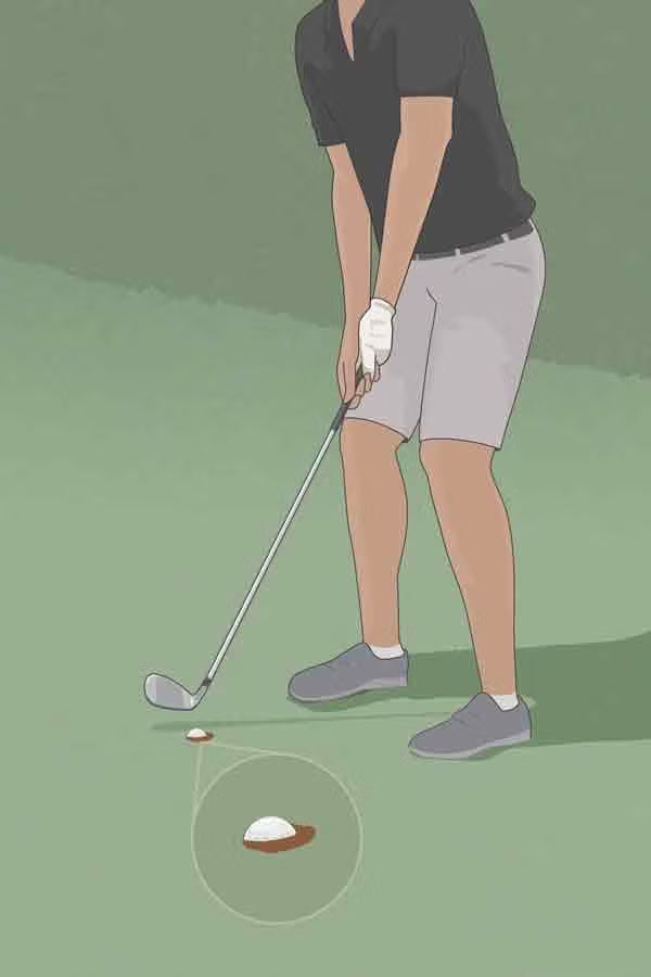Tình huống: Sân ẩm ướt khiến bóng cắm sâu vào fairway.