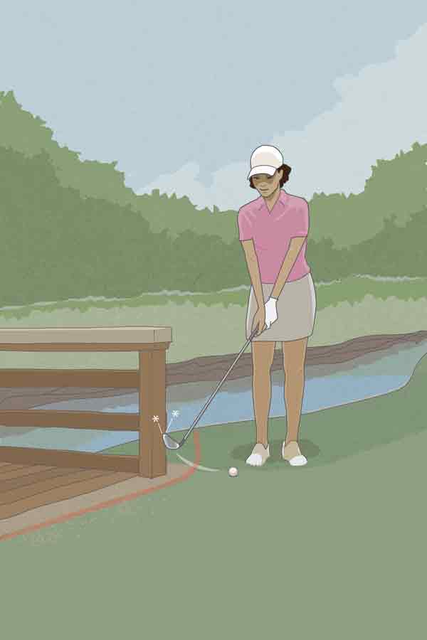 Tình huống: Bóng của bạn không nằm trong khu phạt, nhưng cây cầu trong khu phạt lại cản đường swing.