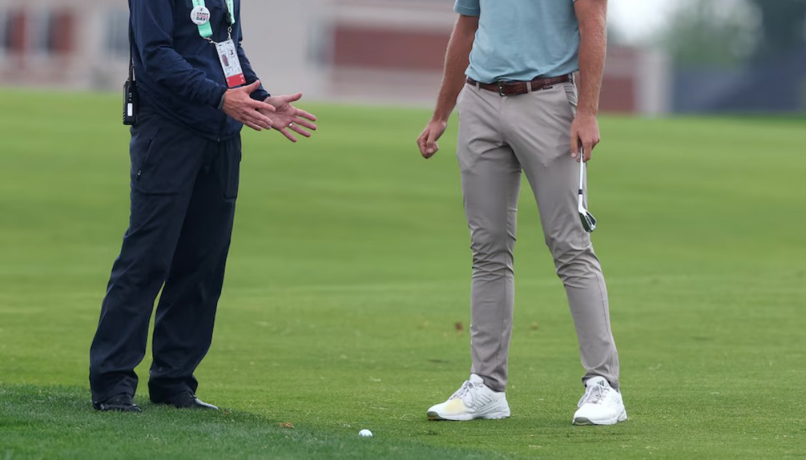 ????❌ Sam Burns did not get relief from casual water after consulting with 2 rules officials — he wasn’t happy after his shot.