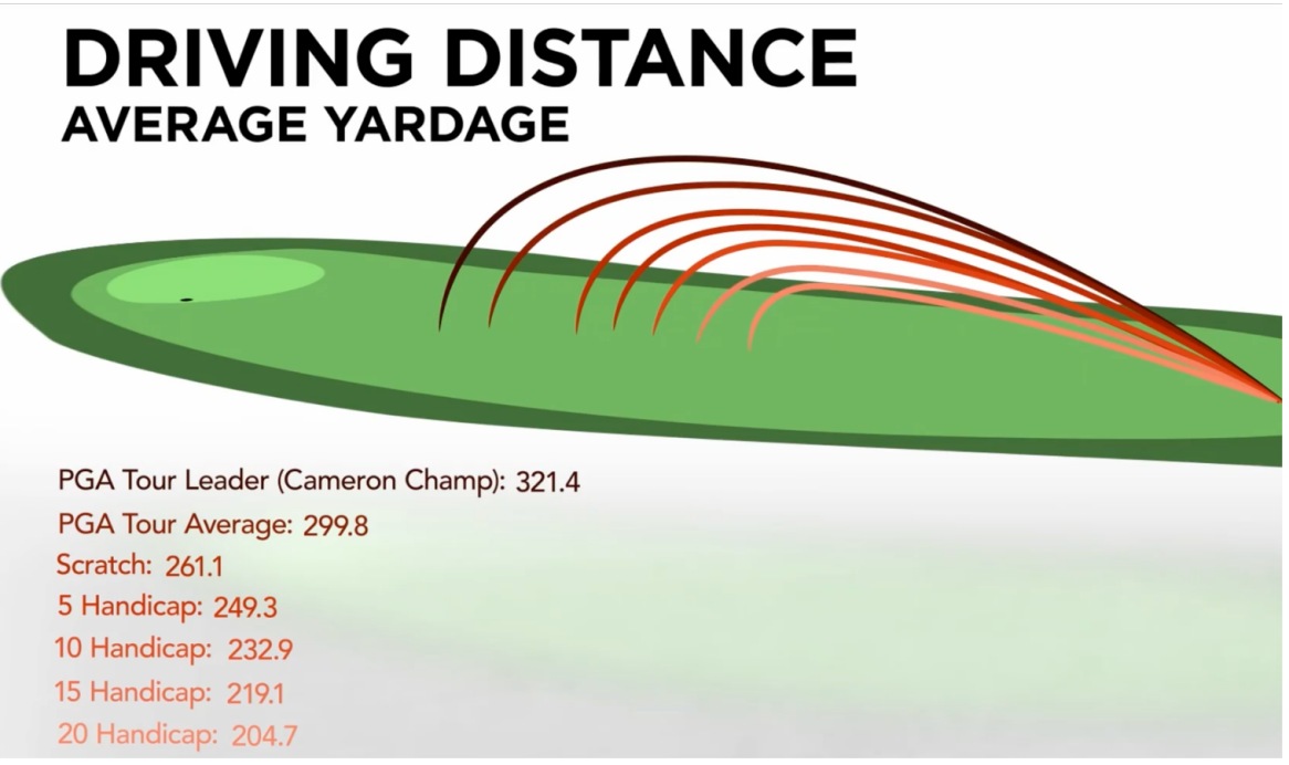 Đây không chỉ là chuyện của pro. Nguyên tắc còn đúng hơn với amateur. Phân tích gần đây từ Arccos chỉ ra: cứ tăng 10 yard từ tee (bất kể độ chính xác), handicap giảm trung bình 1 gậy. Lý do: amateur thiếu ổn định ngay cả từ vị trí đẹp, nên càng gần hố càng tốt.