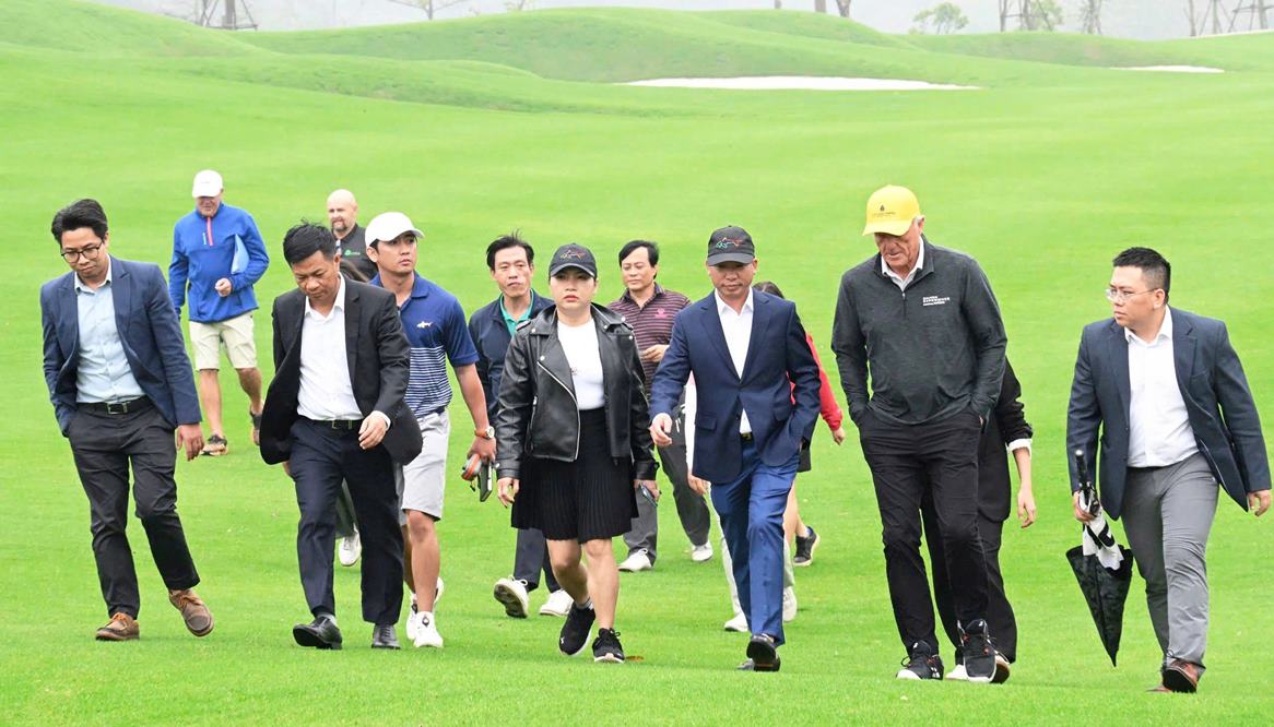 Greg Norman dạo bước trên những thảm cỏ xanh của sân Văn Lang Empire T&T Golf Club.