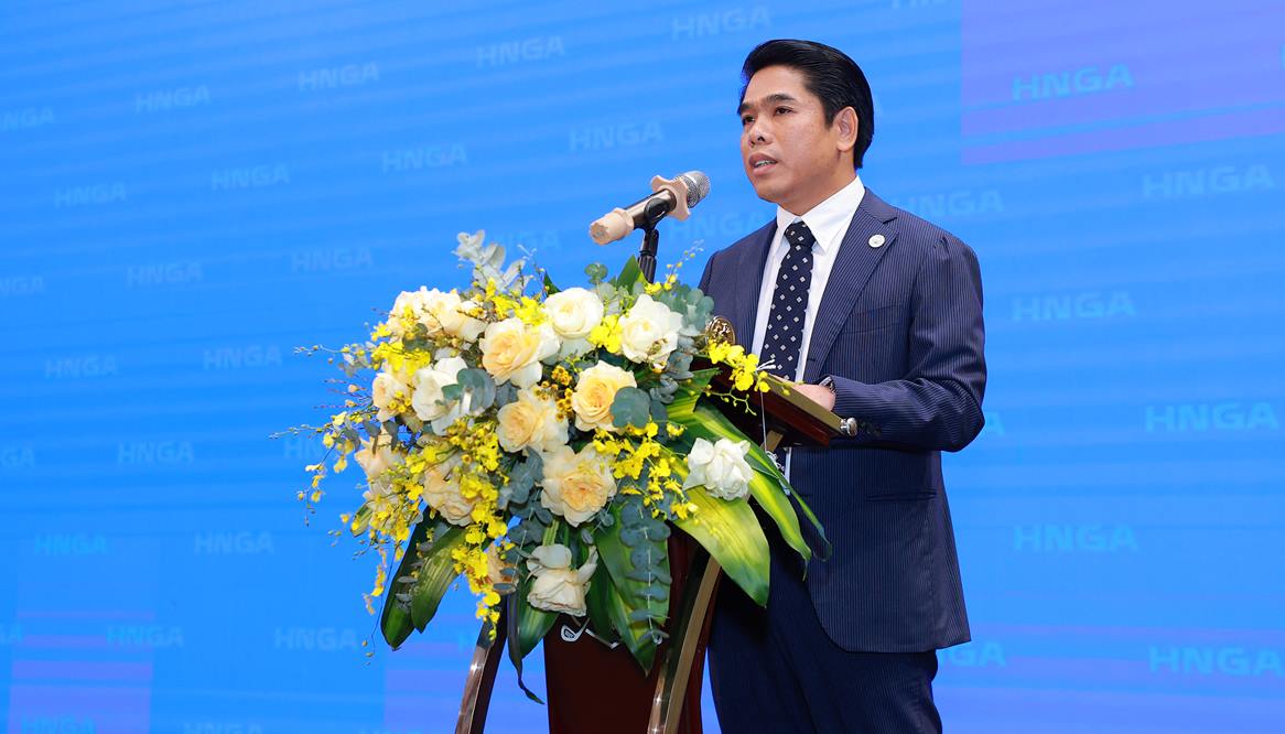 Ông Nguyễn Tô Ninh - Chủ tịch Hội golf thành phố Hà Nội, phát biểu tại lễ công bố hoạt động và giải đấu trong năm của HNGA.