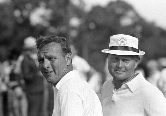 9, Arnold Palmer, trái, và Jack Nicklaus, tại PGA National Team Championship với số điểm gậy thấp 256  (10/12/2966) ở sân West Palm Beach, Fla.